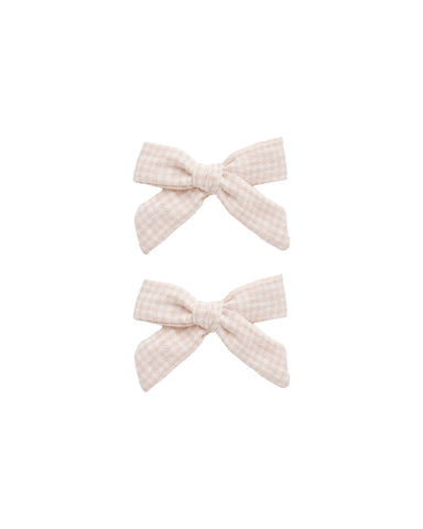 Set of 2 adorable bow clips—perfect for adding a sweet finishing touch to her look. Featuring our ‘petal gingham’ hue. Approximate width ~3.5" Made...