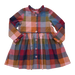 Falling For Flannel! Your little schoolgirl will be hayride ready in our 100% cotton flannel Girls Autumn Dress in Harvest Checks. A rich combination of Fall forward hues warms up this cozy and stylish silohuette. Designer details include flirty ruffles at the neck and cuff, and flash of whimsy with our signature pink glitter buttons up the front. Fully lined.