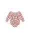 Our Adelaide Romper features a delicate square neckline, smocked detailing at the front and back, long puffed sleeves, and convenient bottom snaps for easy changes.