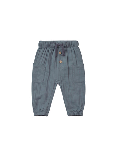 Comfortable corduroy pants with an elastic waistband and leg openings, adjustable drawstring, and side patch pockets. Featuring our ‘ocean’ hue. Ca...