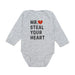 The Mr. Steal Your Heart Valentine's Day Long Sleeve Bodysuit is a fun and festive bodysuit for babies celebrating Valentine's Day!
