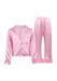 - Elegant two-piece silk set featuring a button-up top with contrast piping and a chest pocket