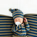 The easiest tie-bottom outfit for day or night. Made for hassle free diaper changes and gentle dressing, I designed this with a button-down front and tie bottom for simple closure (no more snaps at 2am!). Fold over wrist cuffs are the most thoughtful finishing touch.