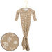 The easiest tie-bottom outfit for day or night. Made for hassle free diaper changes and gentle dressing, I designed this with a button-down front and tie bottom for simple closure (no more snaps at 2am!). Fold over wrist cuffs are the most thoughtful finishing touch.