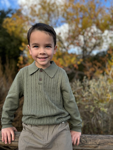 This playful Christian Cable Polo in a rich olive hue is perfect for boys who want to stand out during the holidays. Its classic cable knit texture...