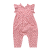 Feeling Rosy! Our delightful Pink Tiny Roses ditsy print tells a charming story on our Baby Girls Jennifer Jumper. Simple and sweet, this crisp one-piece feels at home on both playdates and weekend walks with the grandparents. Design highlights include a feminine ruffle sleeve and neck, and a shimmery accent with silver lurex thred woven throughout. Invisible zipper at the back. Ring snap closure at the legs for easy diapering. Match back to Big Sis in our Girls Peachy Dress.