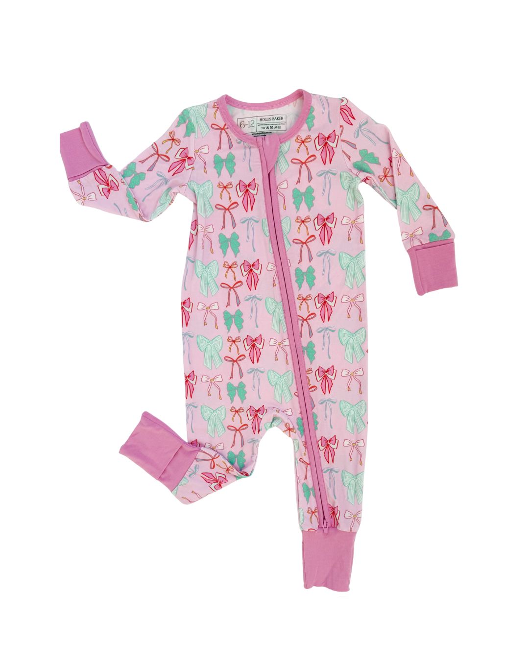 Crafted from buttery bamboo fabric, our Zipper Romper is as gentle on her delicate skin as it is adorable! The playful multi-color bow print on a sweet pink background adds a dash of charm, while the full-length zipper makes diaper changes a breeze (because who has time for snaps?). Perfect for playtime, naptime, or any-time cuddles, this romper is a must-have for your tiny trendsetter. Soft, stylish, and oh-so-bow-tiful!