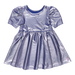Daily Dazzle! All eyes will be on your little showstopper in our attention grabbing Girls Lamé Laurie Dress. This flock favorite boasts a short puff sleeve, scoop neck and fun-loving full skirt. Available in Champagne and Royal Blue lamé.