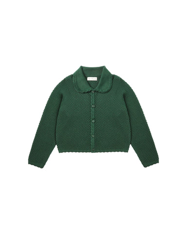 Our Rio Cardigan features a sweet Peter Pan collar and delicate scalloped trim, all crafted in a fun textured knit. Featuring our 'green' hue. Care...