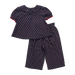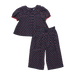 Flowers Upon Flowers! Our new-to-the-collection Baby Girls Dawson 2-Piece Set, crafted in our classic blockprint Navy Carnation, checks all of the boho vintage boxes with its nostalgic peter pan collar, pintucked top with navy glitter buttons at the back and pearl stitched puff sleeves on the top. The matching, elastic waist, straight leg bottoms are highlighted by a navy faux satin bow.