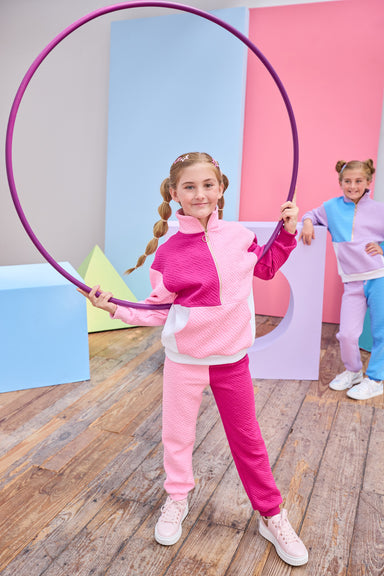 Pink and Cranberry Quilted Trellis Color Block Pullover made by Bisby