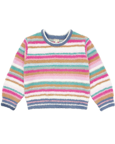 Adorable cropped cardigan featuring soft, fluffy fabric and colorful 3D daisy accents. Designed with a pearl-button front closure for a feminine, ...