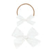 Dress your little one up with our satin bows! Handmade by local moms from high-quality satin. This is the perfect bow for your darling little girl! Each bow is hand tied and is attached to either a nylon headband or alligator clip. All bows are secured so they do not come undone!