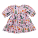 Sugarplum Dreams! Your little ballet lover will be ready to pirouette, leap and take a bow alongside everything she loves about the Nutcracker in our Girls Peachy Dress in Lavender Nutcracker. This swingy triple tiered silhouette features lavender velvet taping at the tiers a 3/4 puff sleeve sleeve and an invisible zipper at the back.