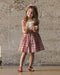 Our adorable Annette Dress features a gathered ruffle neckline and tiered skirt with pleated detail, that all comes together with the perfect oversized fixed waist bow. Coordinating bloomers included with size 2Y.