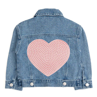 This denim jacket features a statement pink heart patch on the back adorned with delicate pearls for a touch of shine. A perfect layering piece th...