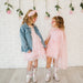 This denim jacket features a statement pink heart patch on the back adorned with delicate pearls for a touch of shine. A perfect layering piece that adds fun and flair to any outfit.