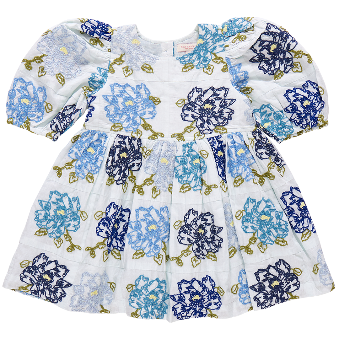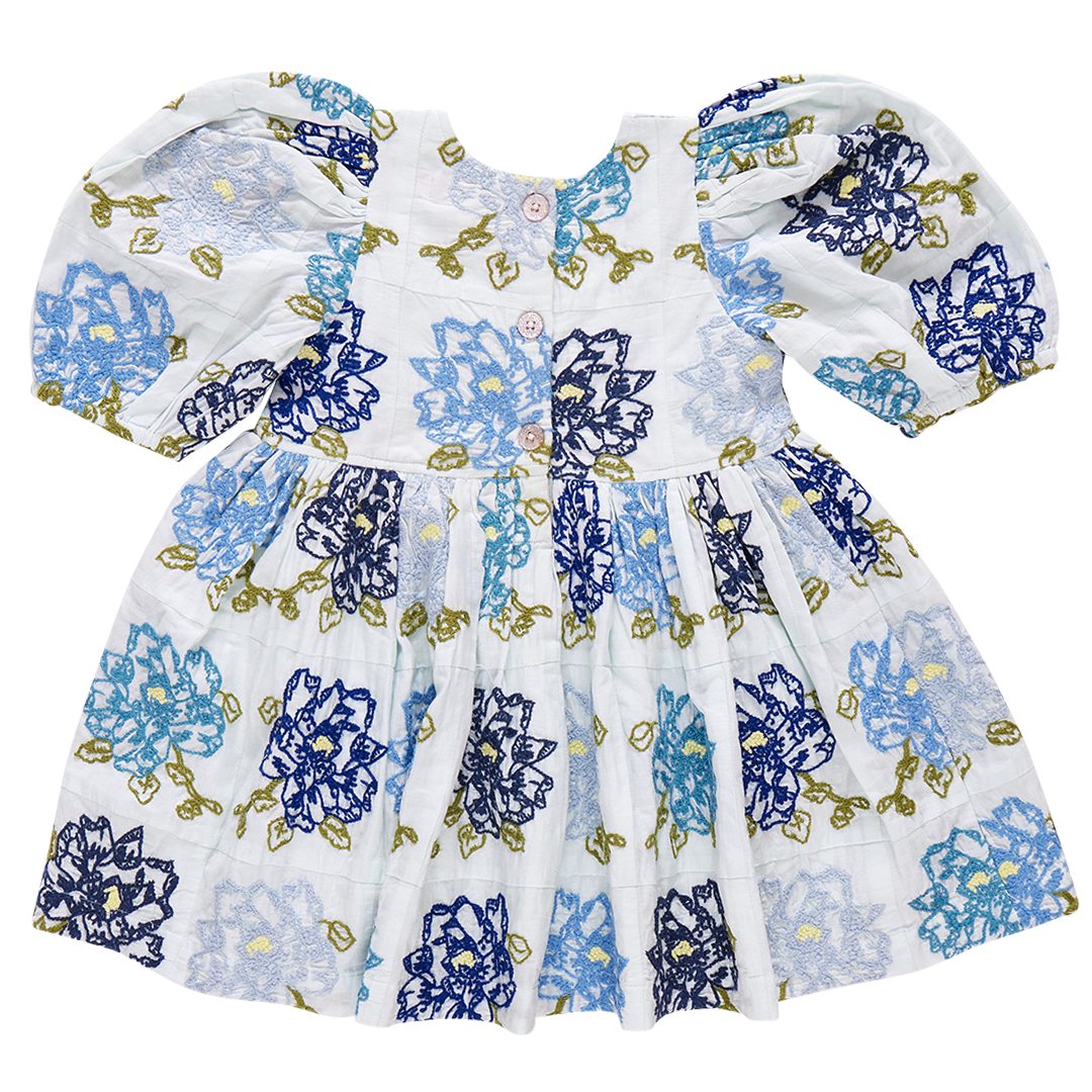 Brooke Dress - Blue Quilt Flower Embroidery