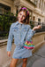 - Trendy denim skirt with a subtle sparkle finish, adding a fun and stylish touch