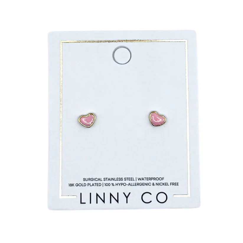 Add a vibrant, playful element to your style with the Nora Heart Pink Stud Earrings. These 7mm enamel-coated pink heart studs are beautifully embellished with sparkles, creating a fun and charming design. Made from 100% surgical-grade stainless steel, these earrings are lightweight, durable, and hypoallergenic, making them perfect for sensitive ears. The secure screwback design ensures a snug fit, ideal for both adults and kids.