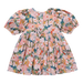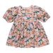 Garden of Dreams Our soft and feminine Watercolor Floral is like a kaleidescope of floating flowers floating. This dreamy print is the perfect compliment to our classically tailored Baby Girls Evelyn Dress Set. This easy to wear piece features a pleated chest and gathered long sleeves. Perfect for the first day of school or a museum outing to see Monet's gardens. Our signature glitter buttons at the back round out the cheerful look. The matching elastic waist diaper cover features a fixed green satin bow at the waist.