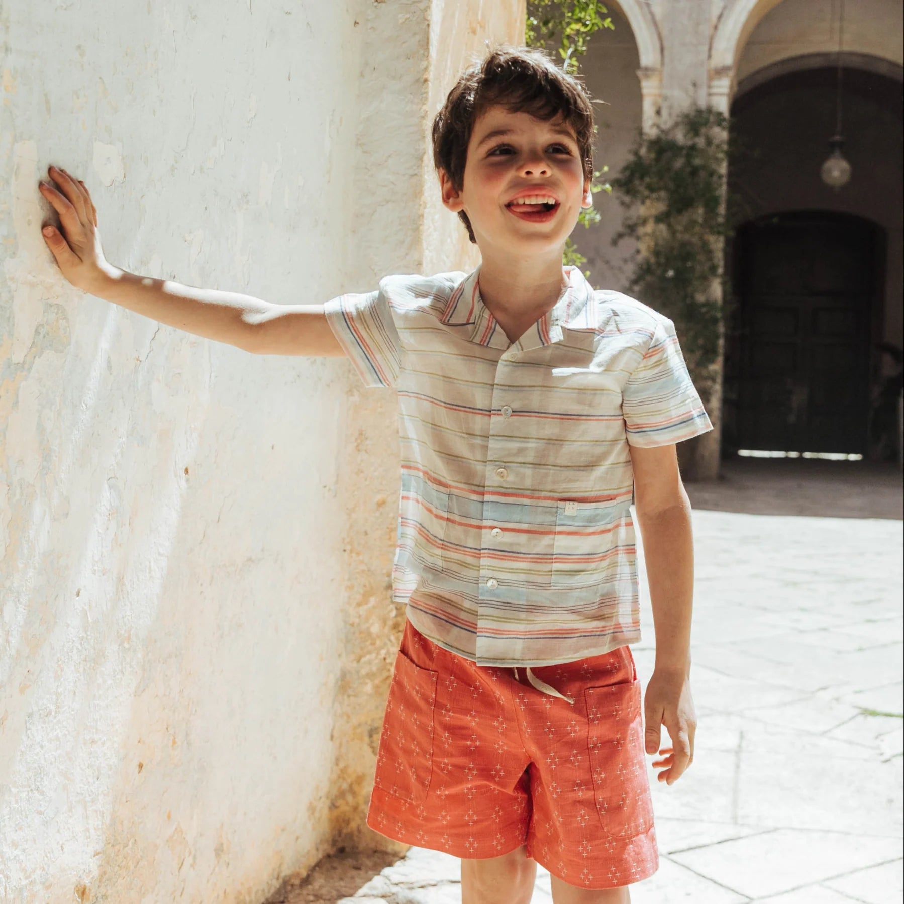 The Henri Shirt in Border Stripe is a sweet 70's inspired vintage button up. Henri is made from 100% cotton and is medium weight. Playful front pockets and an open collar lend a casual yet sophisticated look. Mother-of-pearl buttons add beauty and allow for ease of use. Henri’s back pleat aids to comfort and growing bodies.