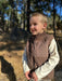 The Hunter Vest in brown blends cotton and polyester to keep boys warm during outdoor play. Designed for active days, this cozy vest offers comfort and durability, making it a great choice for endless adventures in nature.